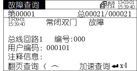 監(jiān)控器自動(dòng)記錄發(fā)生的所監(jiān)控的防火門故障及監(jiān)控系統(tǒng)其他故障記錄,通過“故障查詢”可查詢到所有記錄。